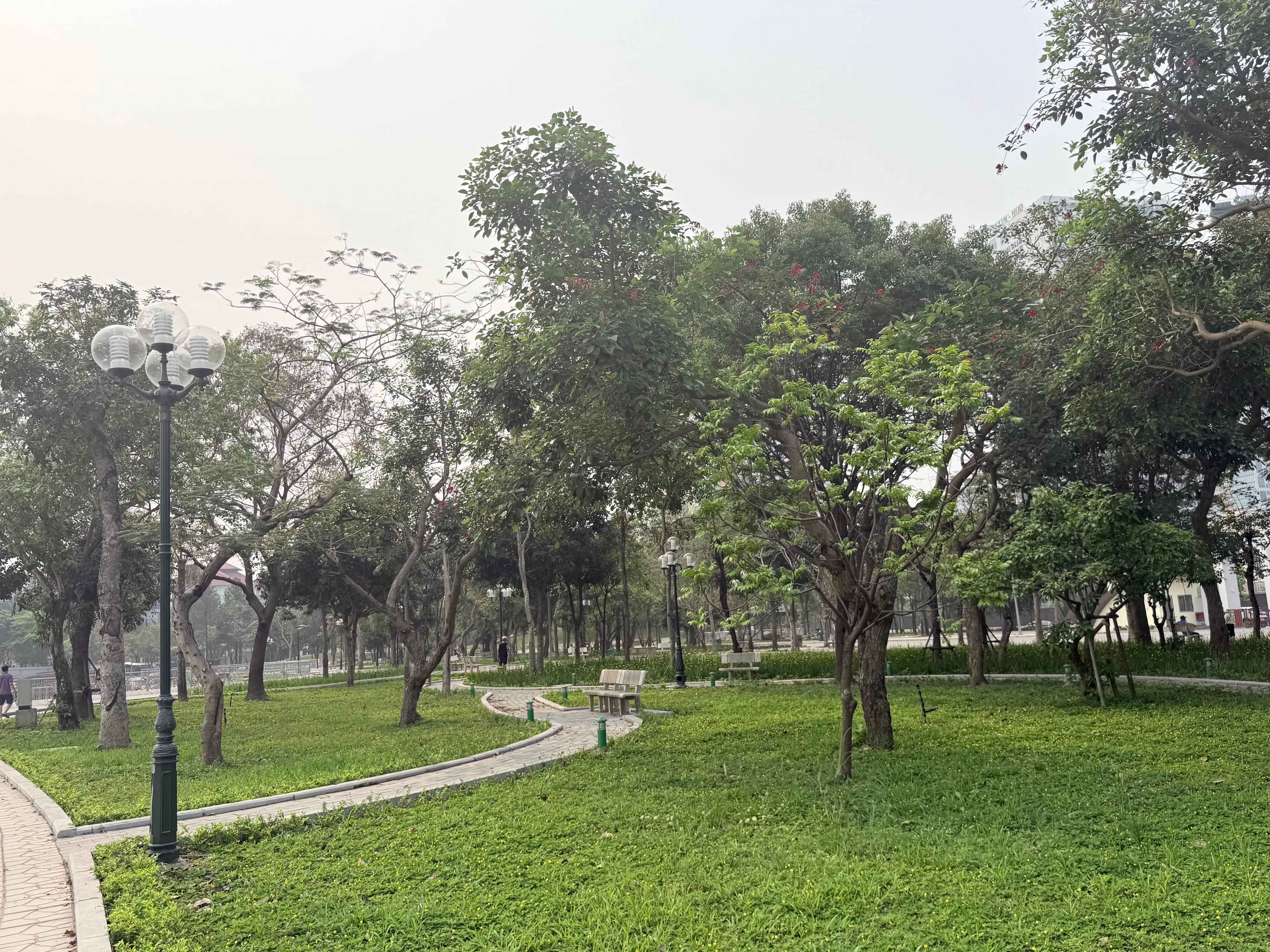 Nắng trong công viên bắt đầu lên cao hơn một chút. Không phải cái nắng hầm hập đặc trưng của mùa hè Hà Nội. Đây là cái nắng đầu mùa, vừa phải. Tôi dừng lại ở một đoạn đường vắng nhất trong công viên, nhìn quanh một lượt. Không có ai. Rồi cởi áo ra. Gấp lại, kẹp dưới nách. Đánh trần và tiếp tục đi.
